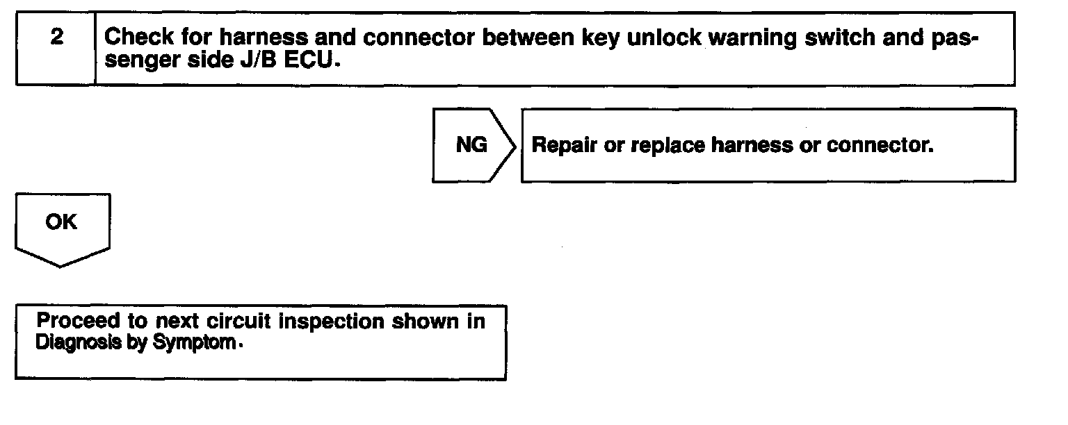 CIRCUIT DESCRIPTIONThe key unlock warning switch goes ON when the ignition key is inserted in the key cylinder and goes OFF when the ignition key is removed.