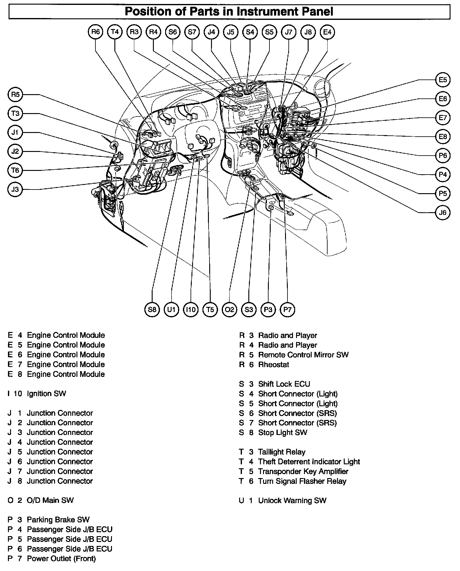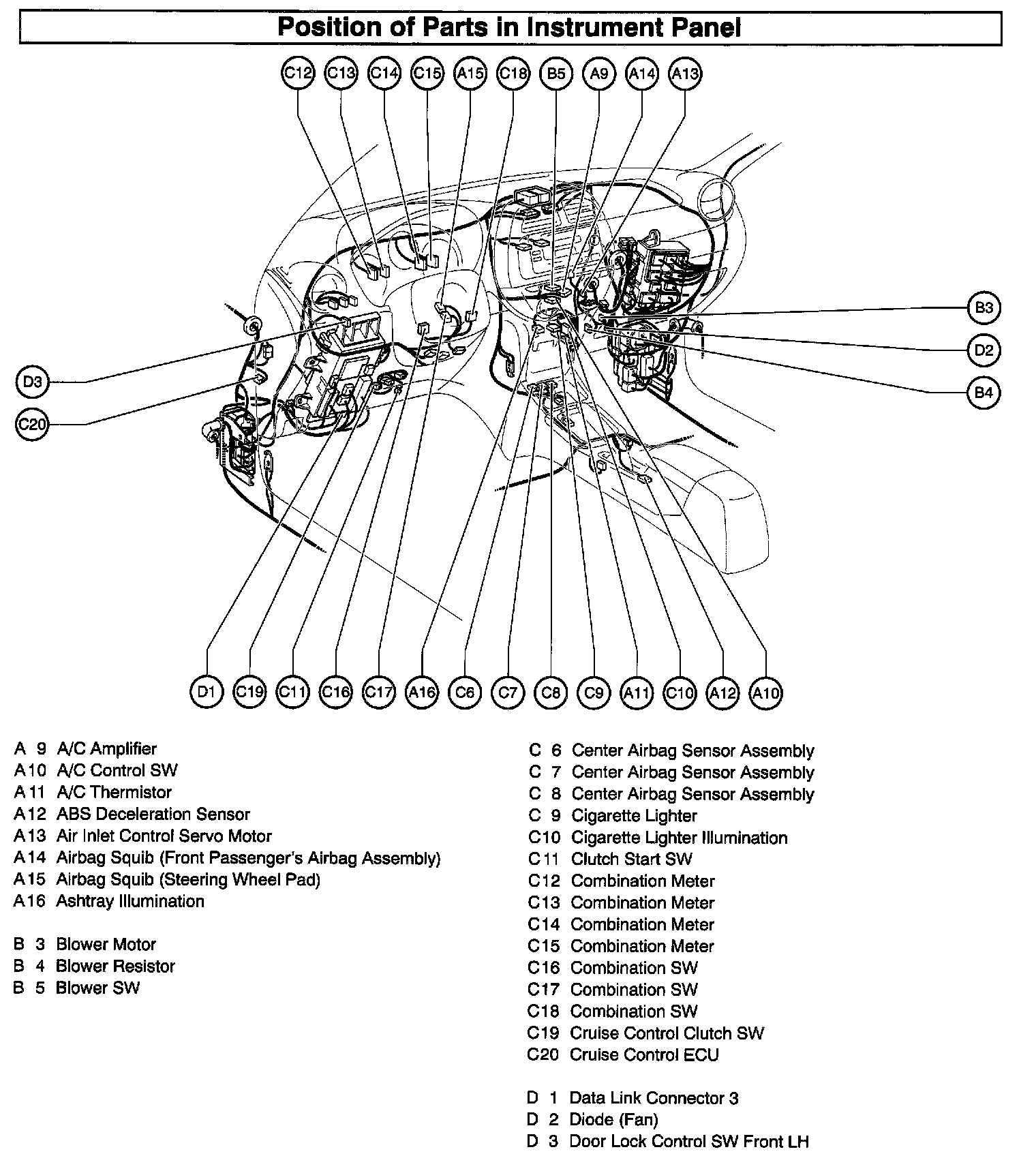 Position Of Parts In Instrument Panel Part 1: