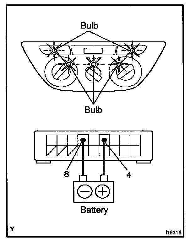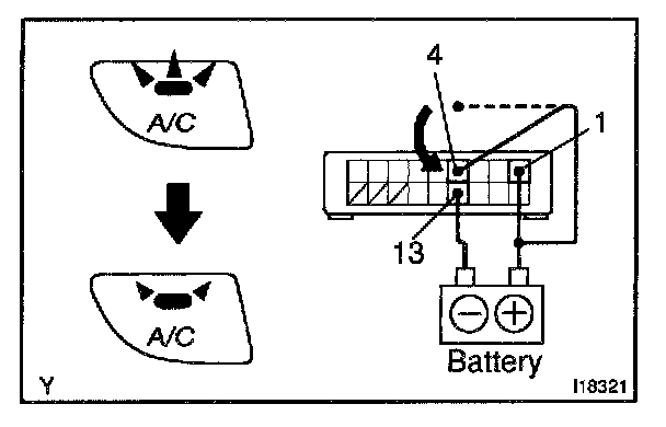 b. Connect the positive (+) lead from battery to terminal 4 and then check that the A/C indicator dims.