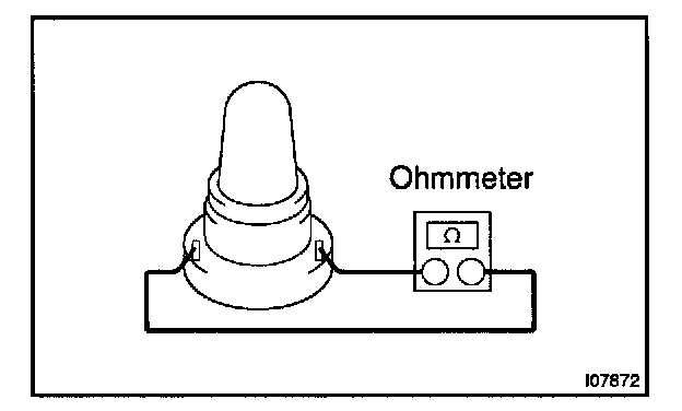Using an ohmmeter, apply the tester as shown in the illustration to the test for continuity.