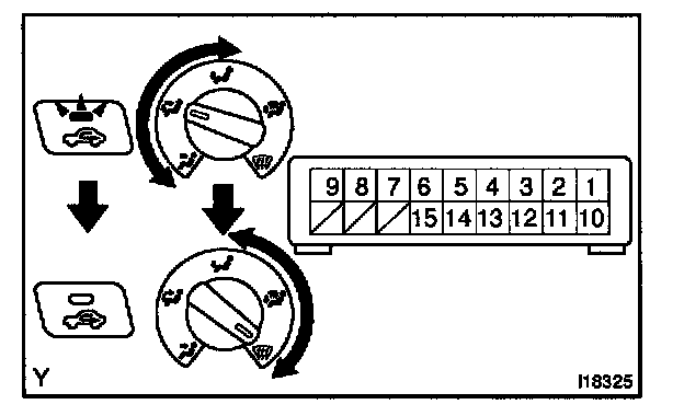 9. Defroster damper control dial: INSPECT AIR INLET CONTROL SWITCH INDICATOR OPERATION