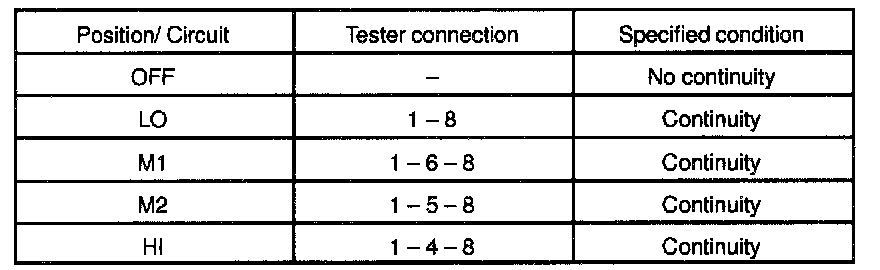 10. INSPECT BLOWER SPEED CONTROL SWITCH CONTINUITY