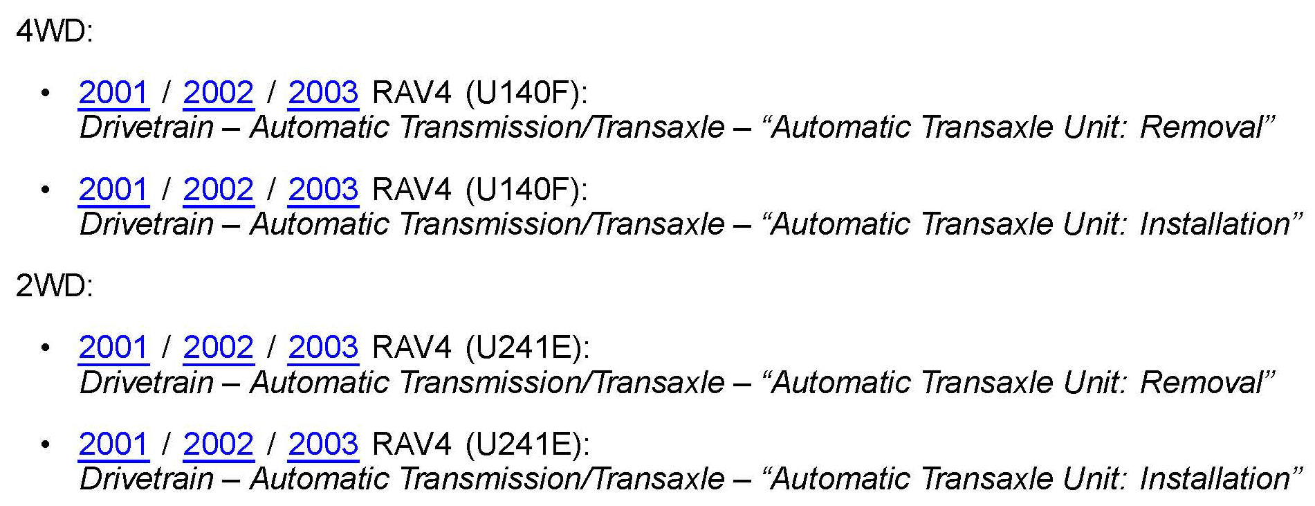 Refer to TIS, applicable model year RAV4 Repair Manual:
