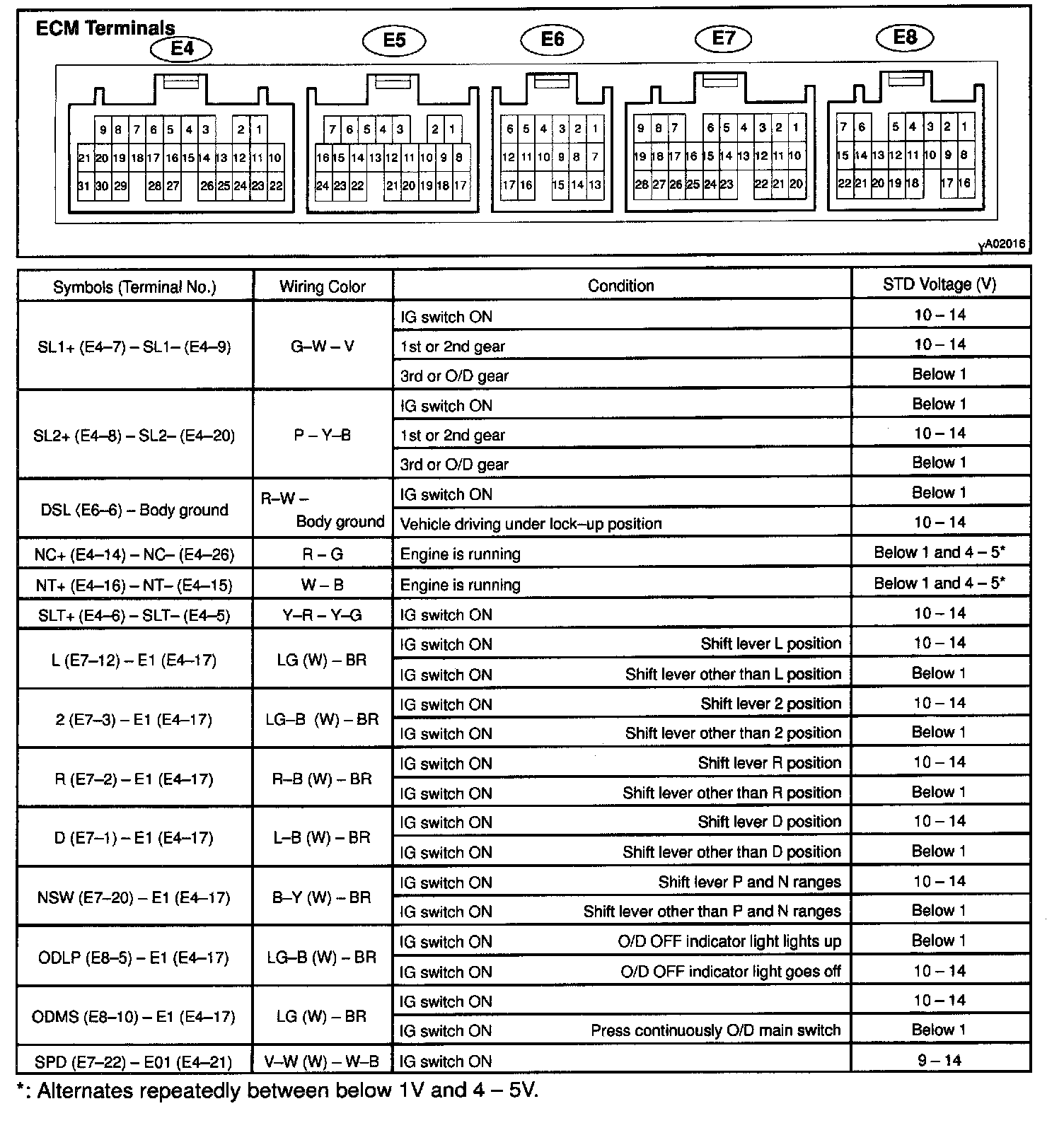 Pinout Values and Diagnostic Parameters
