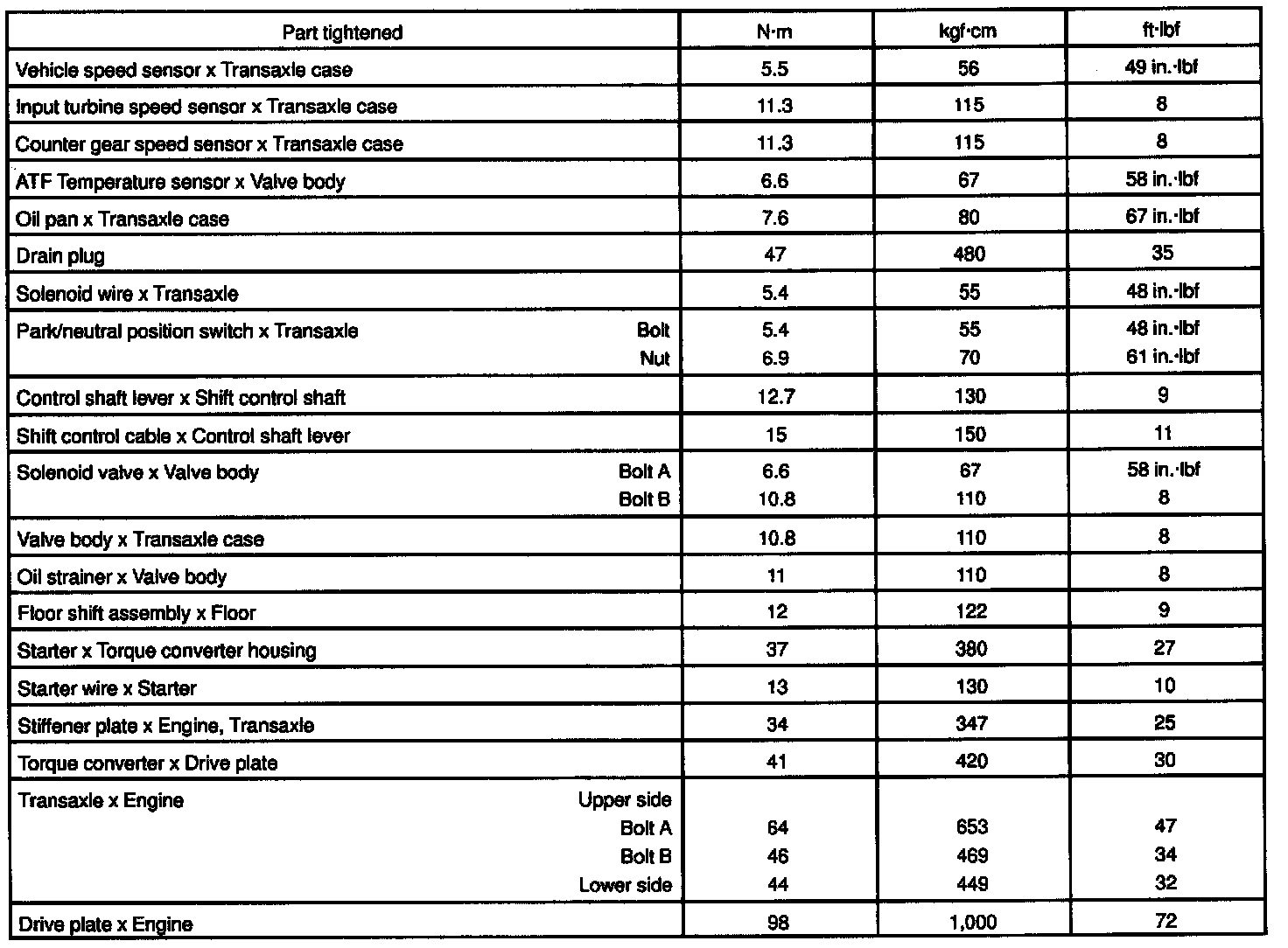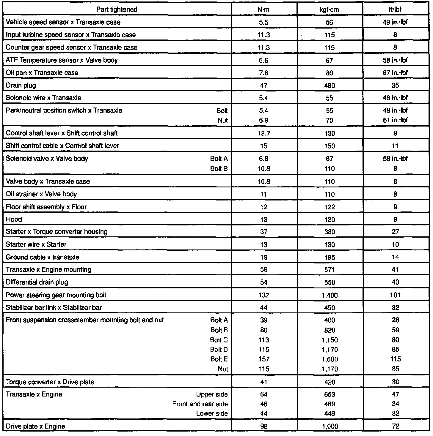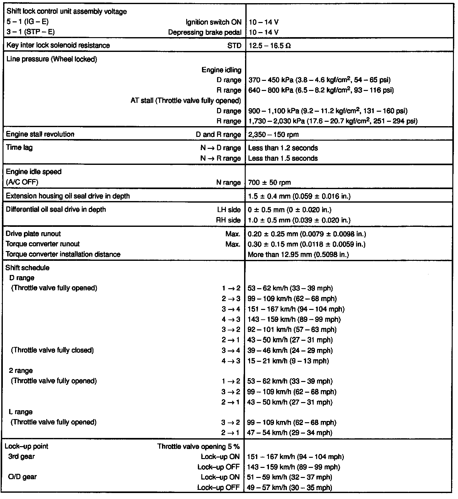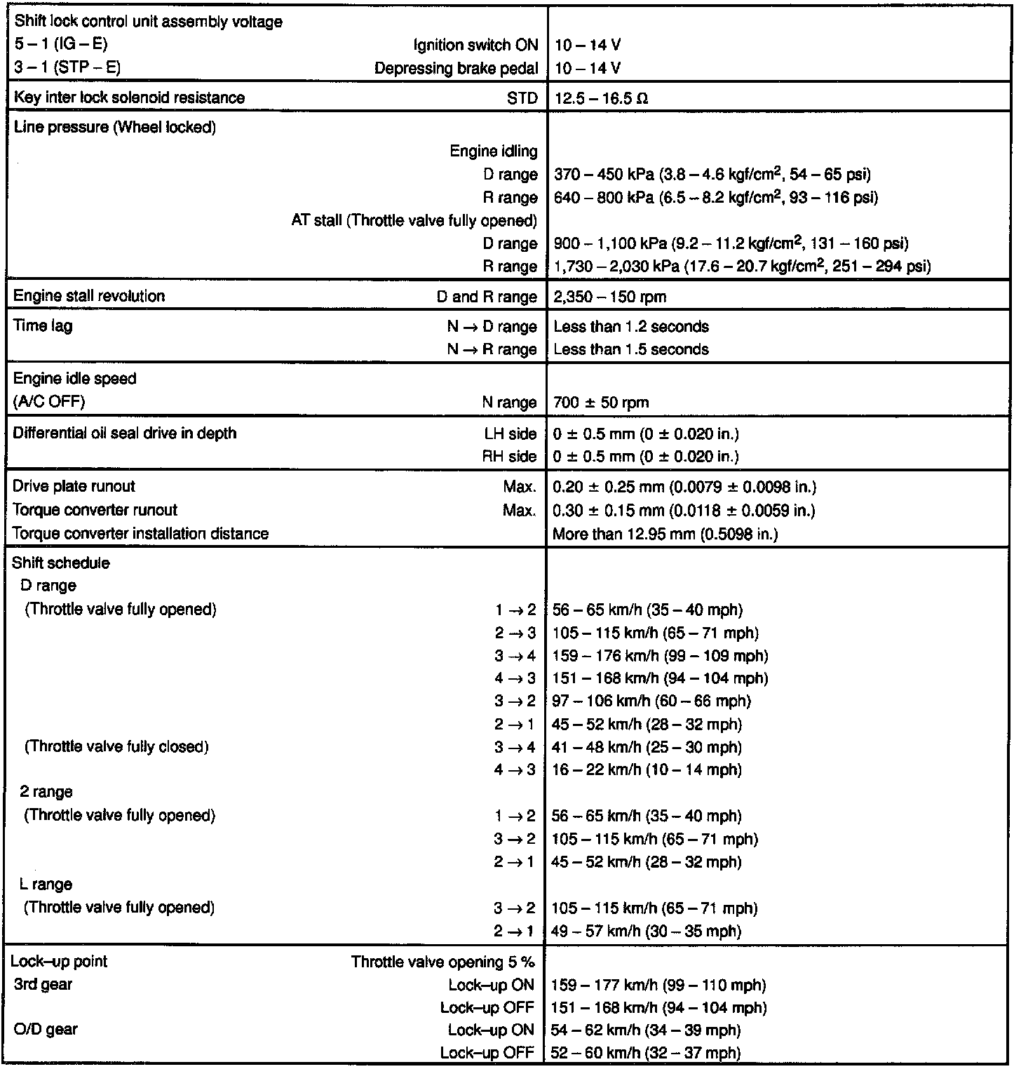 AUTOMATIC TRANSAXLE (U241E) SERVICE DATA: