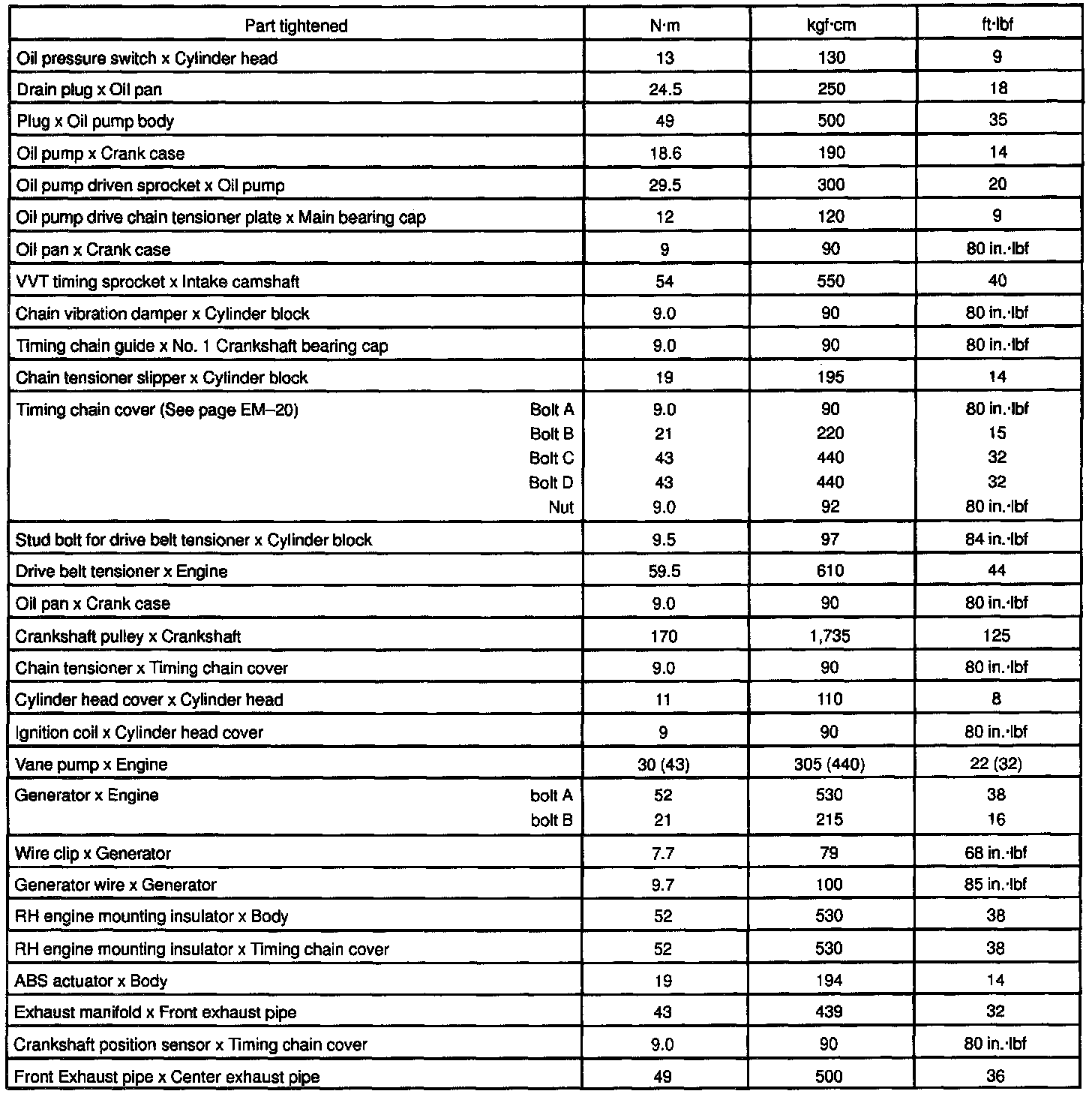 TORQUE SPECIFICATION: