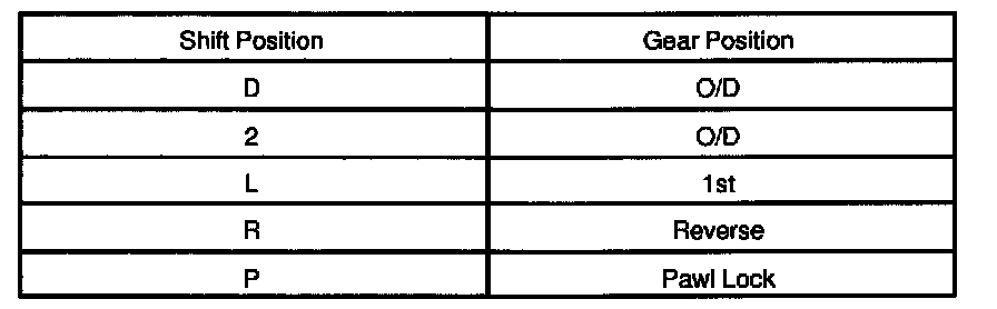While driving, shift through the L, 2 and D positions. Check that the gear change corresponds to the shift position.