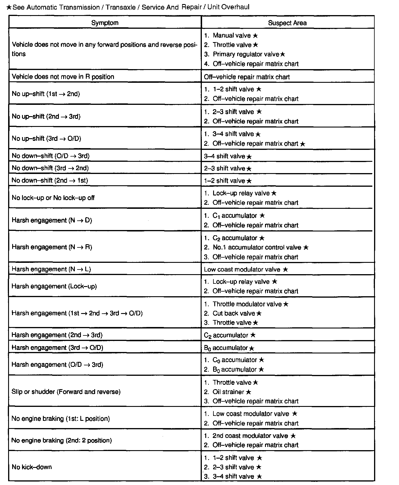 Chart 2: On-vehicle Repair Matrix Chart