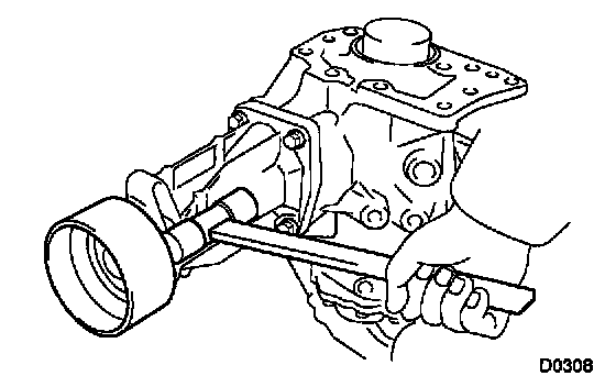 d. Using SST, remove the bearing retainer RH from the transfer case.