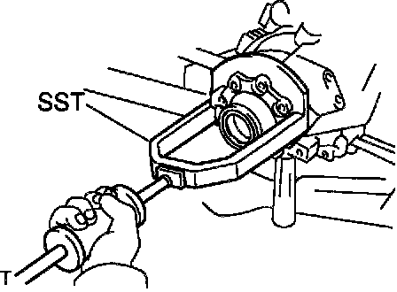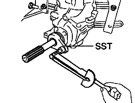 a. Using SST and a torque wrench, measure the driven pin-ion preload of the backlash between the driven pinion and ring gear.