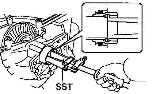 g. Using SST, remove the outer race, washer and oil seal from the bearing retainer RH.