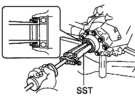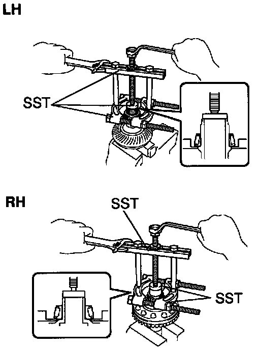 Using SST, remove the tapered roller bearing inner race LH and RH.