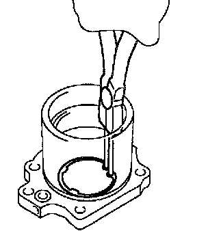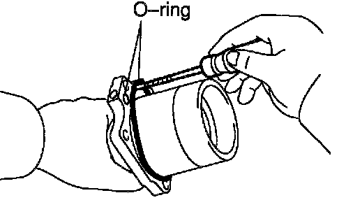 e. Using a screwdriver, remove 2 O-rings from the bearing retainer RH.
