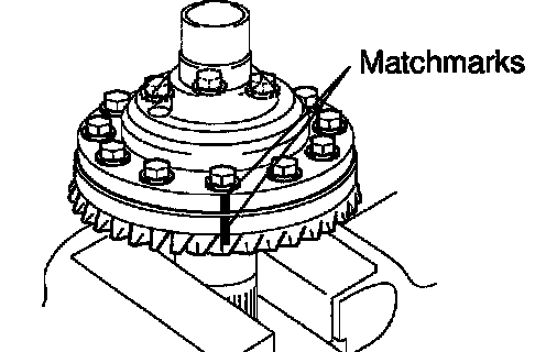 a. Place matchmarks on both the ring gear and the center differential control coupling.