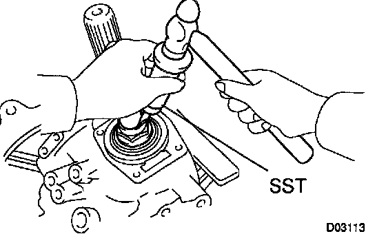 a. Using plastic hammer, remove the dust deflector from the extension housing.
