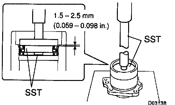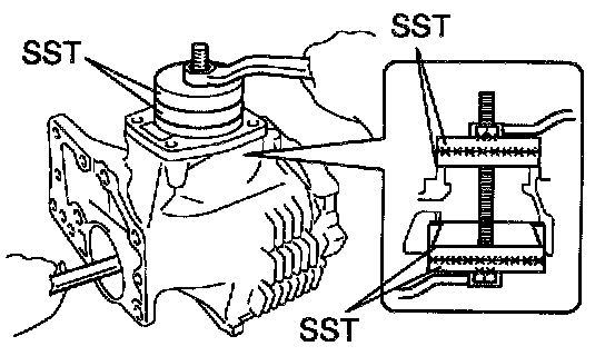 e. After having inserted the bearing retainer to the transfer case, remove SST.