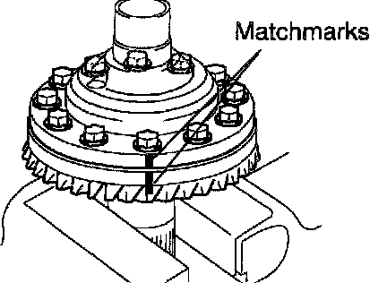 a. Coat 3 or 4 teeth at the 4 different positions on the ring gear with red lead.