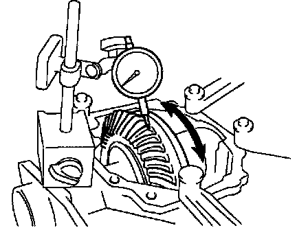 Using a dial indicator, measure the backlash of the ring gear at 3 positions at least.