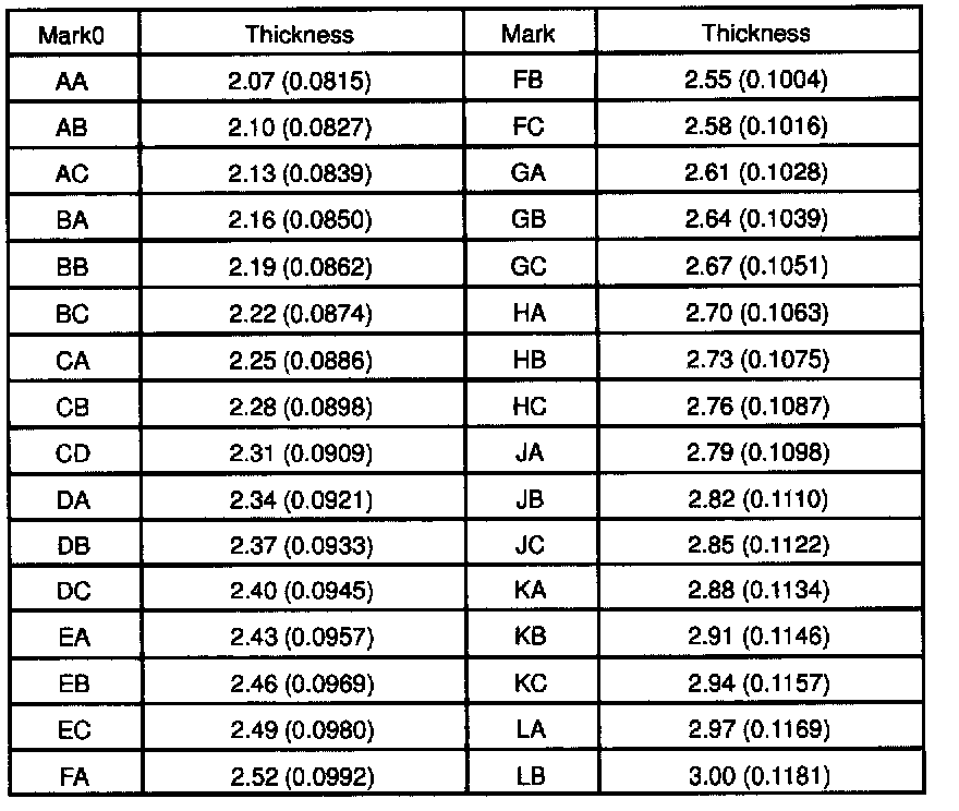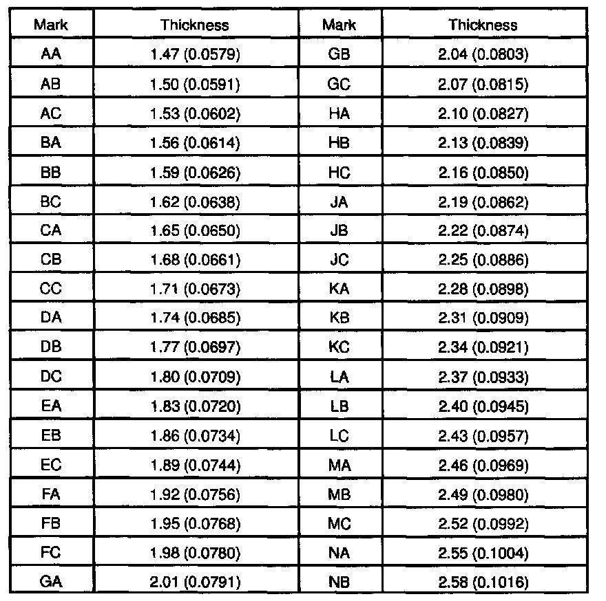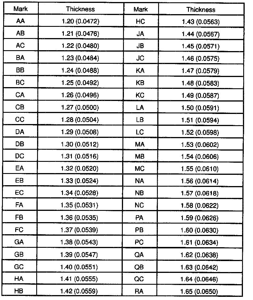 Washer thickness: mm (inch)