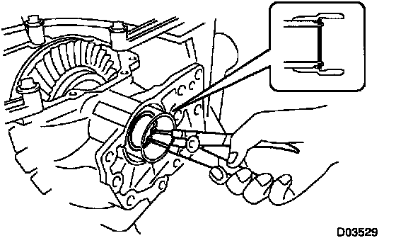If the backlash is not within the specification replace the washer on the ring gear side with one of a different thickness using the following procedure.
