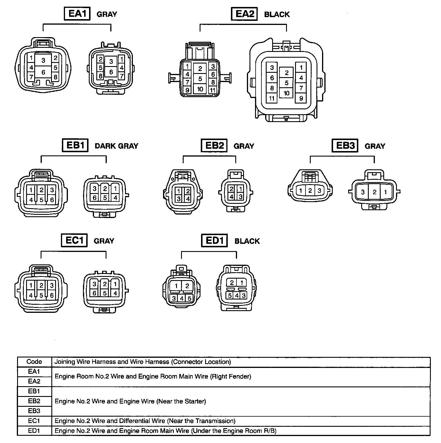 Under Hood Wire Harness To Wire Harness Connectors (EA1 - ED1):