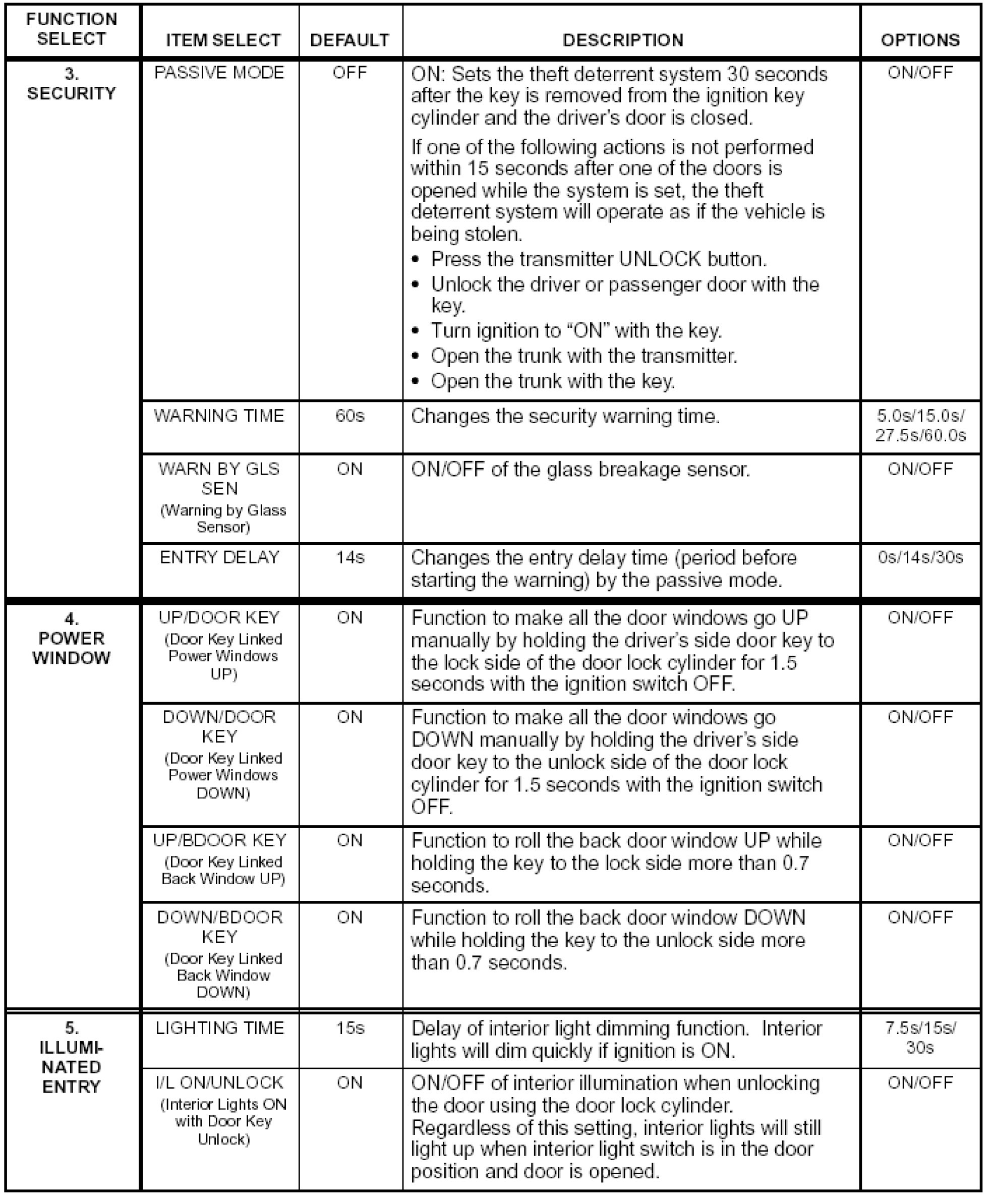 In cases where dealers maintain a vehicle service history database, a detailed description, including the old setting and the new setting should be entered into the vehicle's service history as a note.