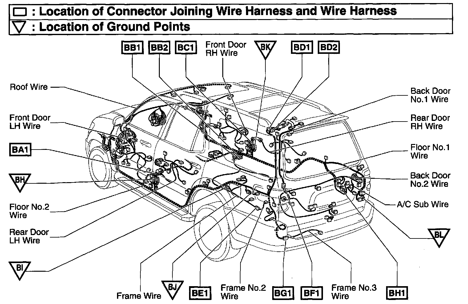 BH1 Floor No.1 Wire and A/C Sub Wire (Right Side of Rear Quarter Panel)