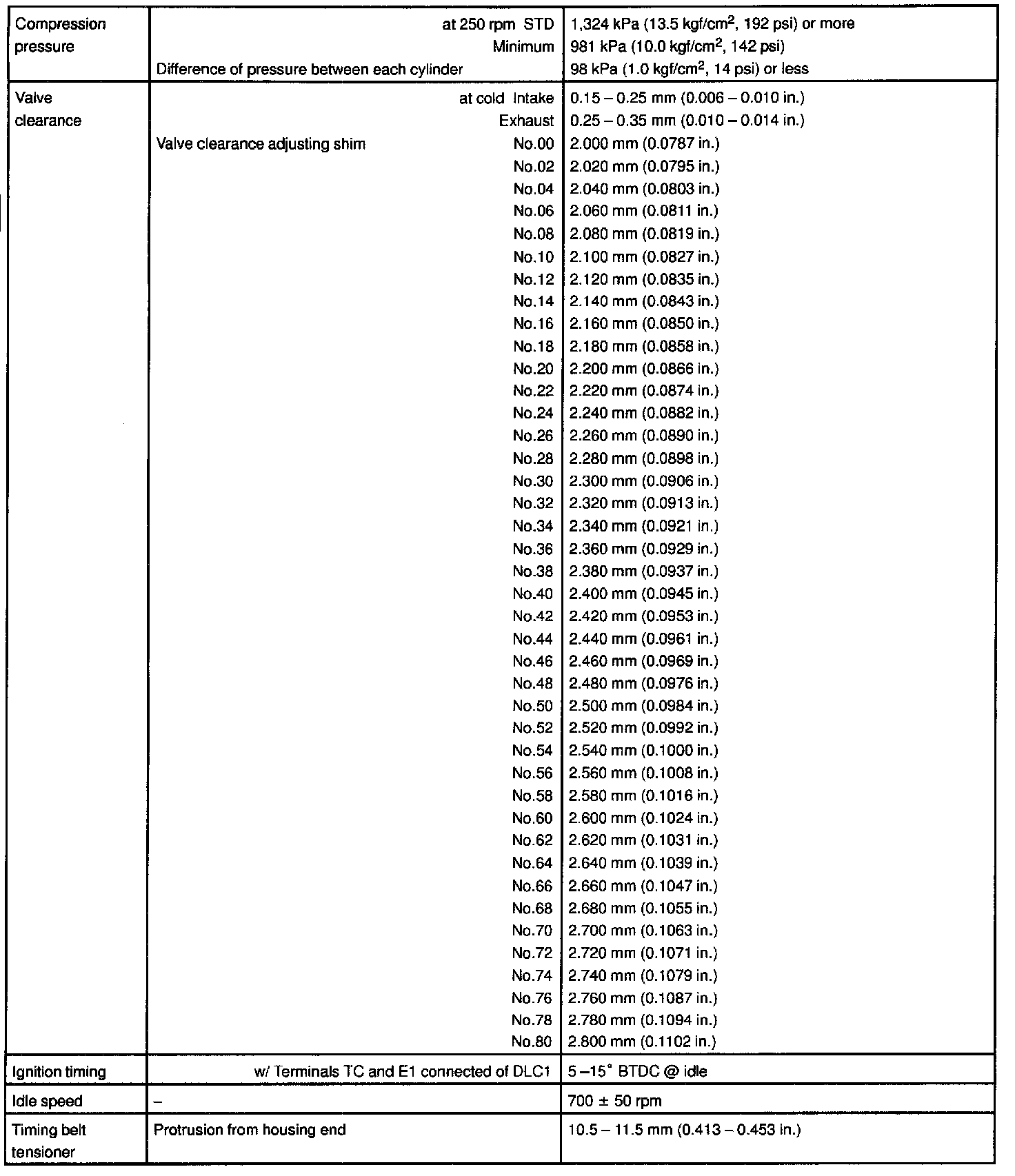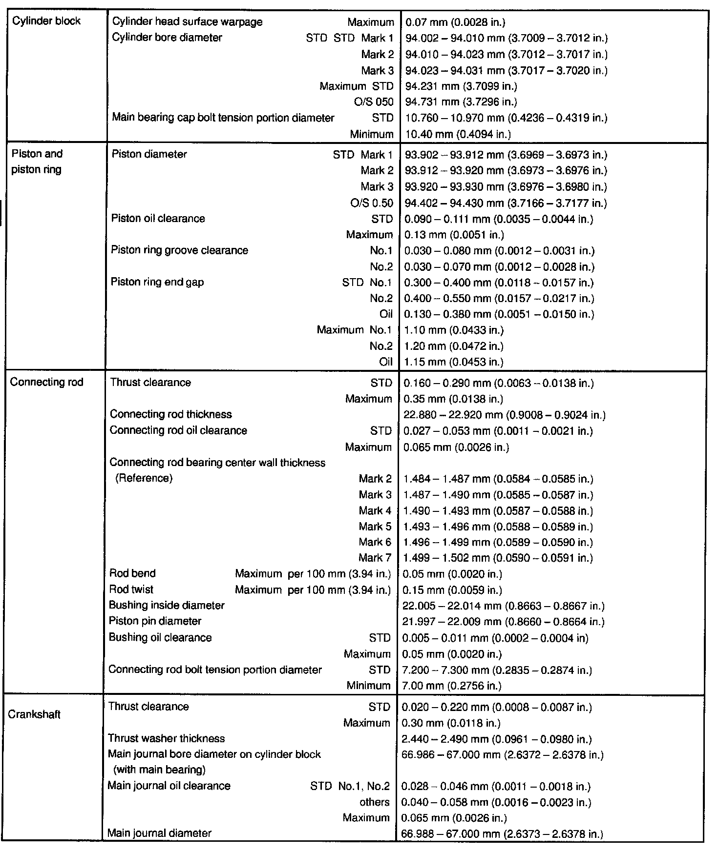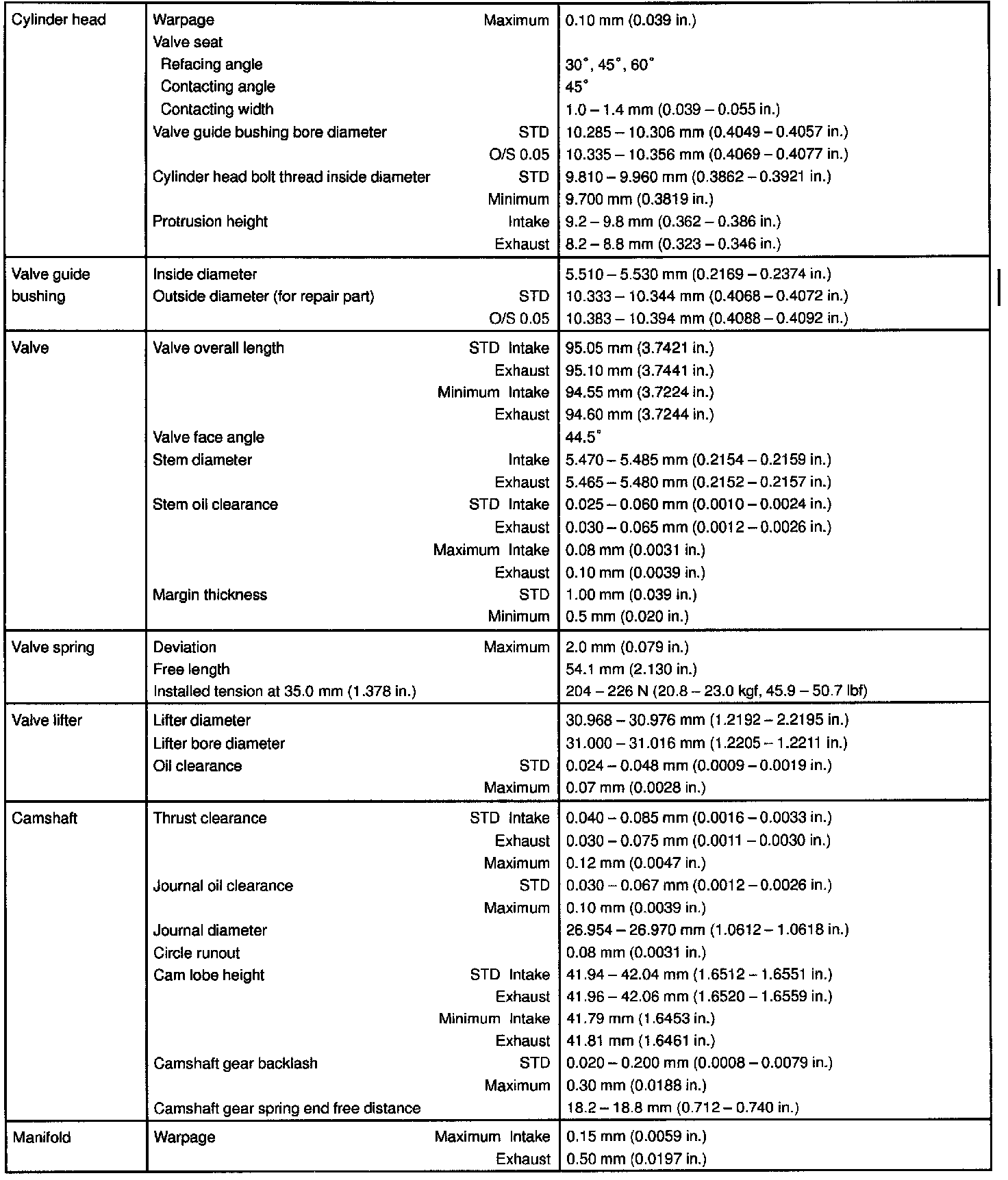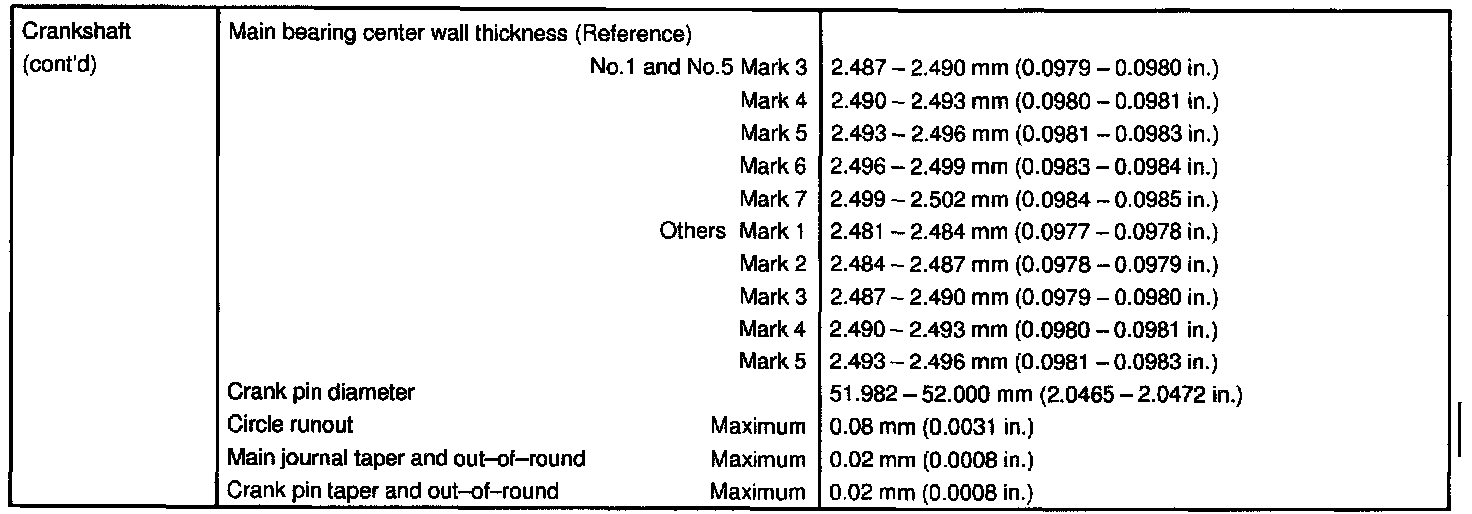 ENGINE MECHANICAL SERVICE DATA: