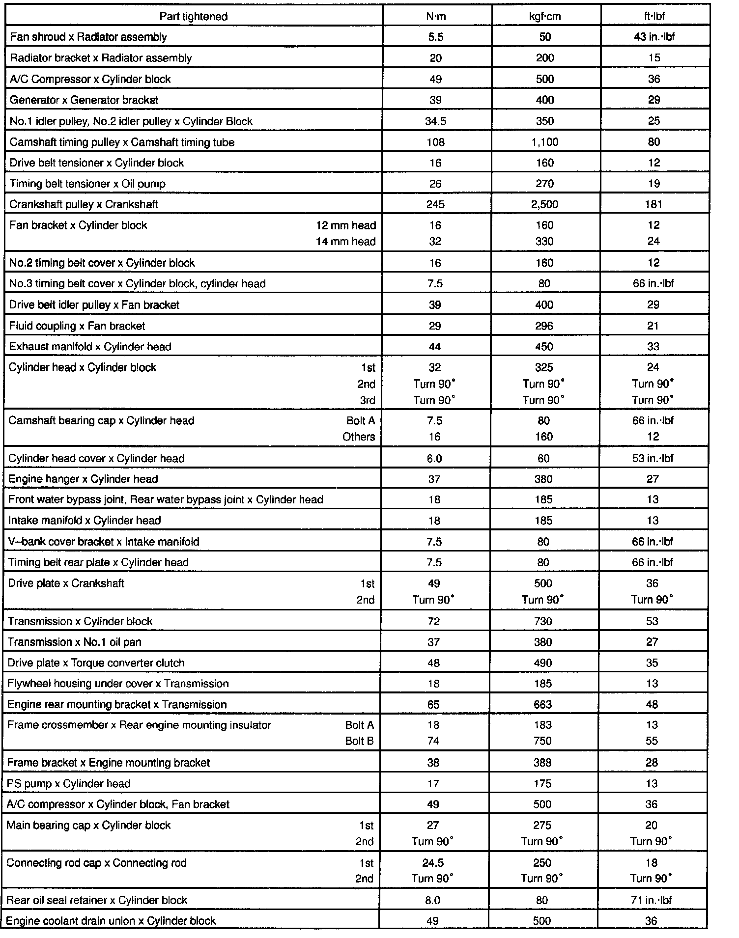 TORQUE SPECIFICATION: