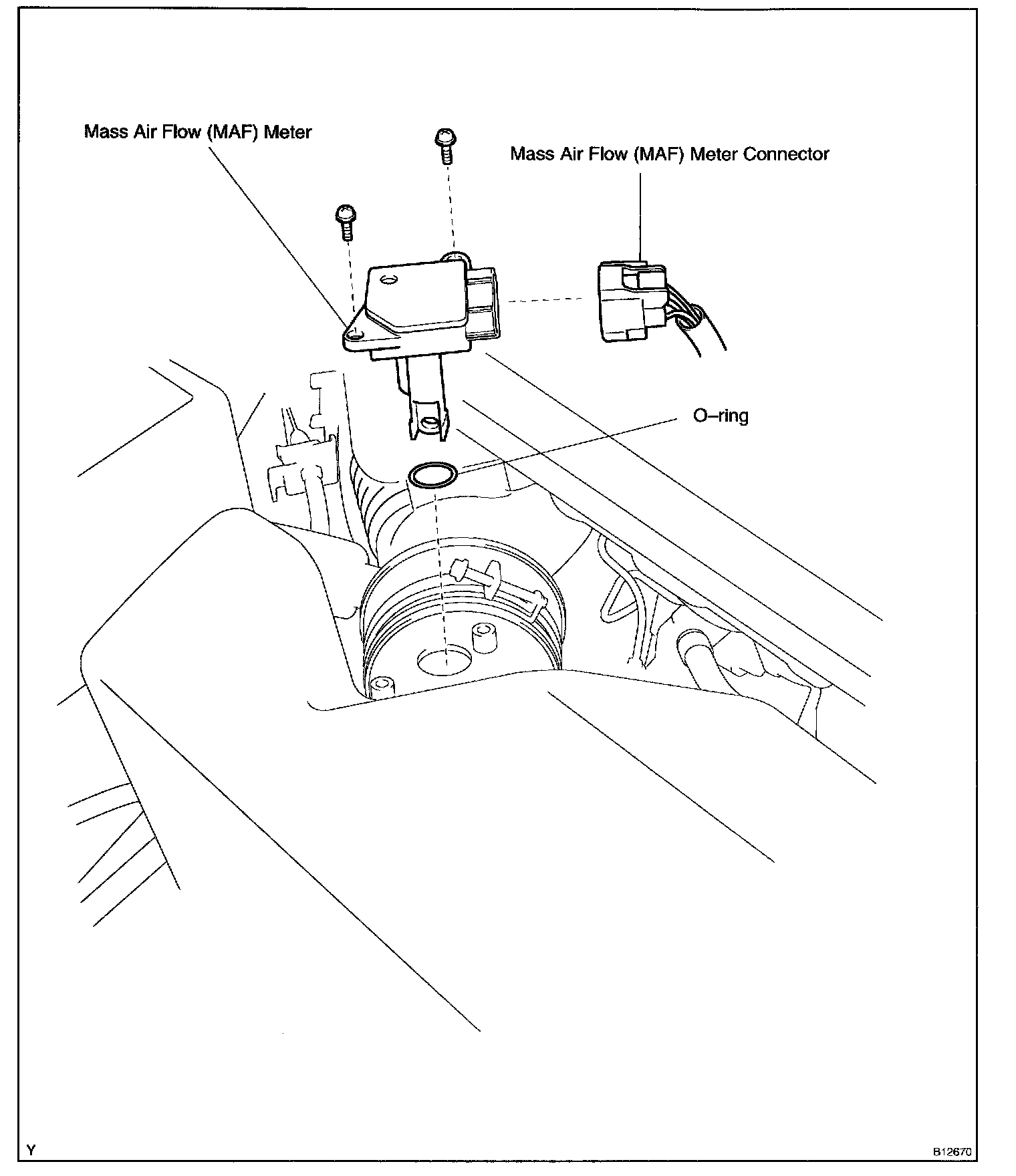 b. Remove the 2 screws, MAF meter and O-ring.