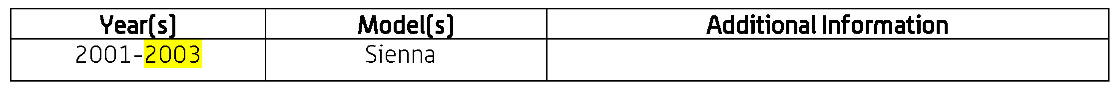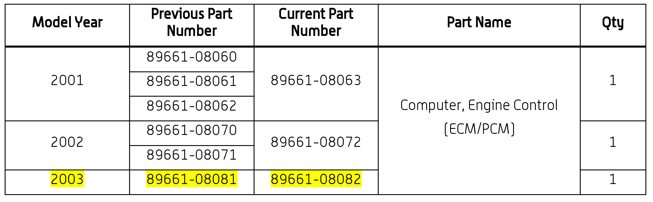 - November 26, 2008: 2003 model year has been added to Applicable Vehicles. Warranty and Parts Information have been updated.