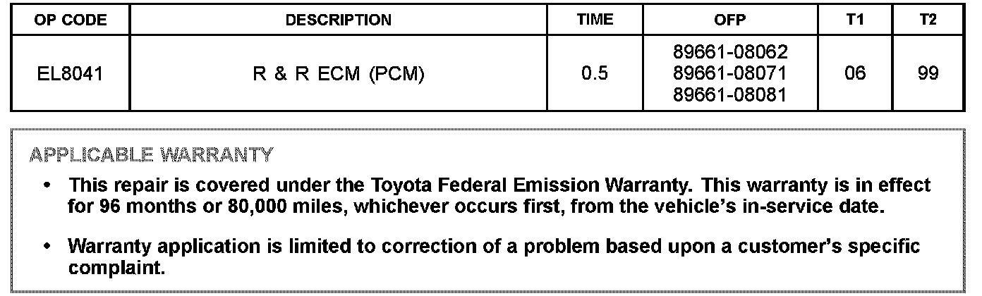 Some 2001 - 2003 model year Sienna vehicles equipped with a 1MZ-FE engine may exhibit an intermittent "pinging" or "knocking" noise when accelerating slowly up a grade. The Engine Control Module (ECM) (SAE term: Powertrain Control Module/PCM) logic has been modified to improve this condition. Use the following procedure to address customer concerns.