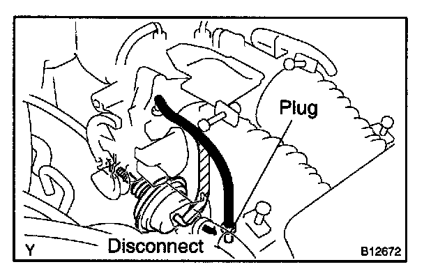 c. Disconnect the vacuum hose from the throttle opener, and plug the hose end.