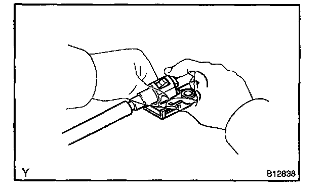 HINT: Any diagnostic trouble code retained by the computer will be erased when the negative (-) terminal cable is removed from the battery. Therefore, if necessary, read the diagnosis before removing the negative (-) terminal cable from the battery.