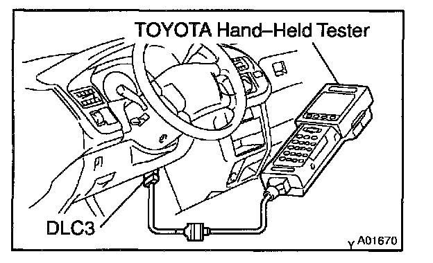 1. Connect the TOYOTA hand-held tester to the DLC3.