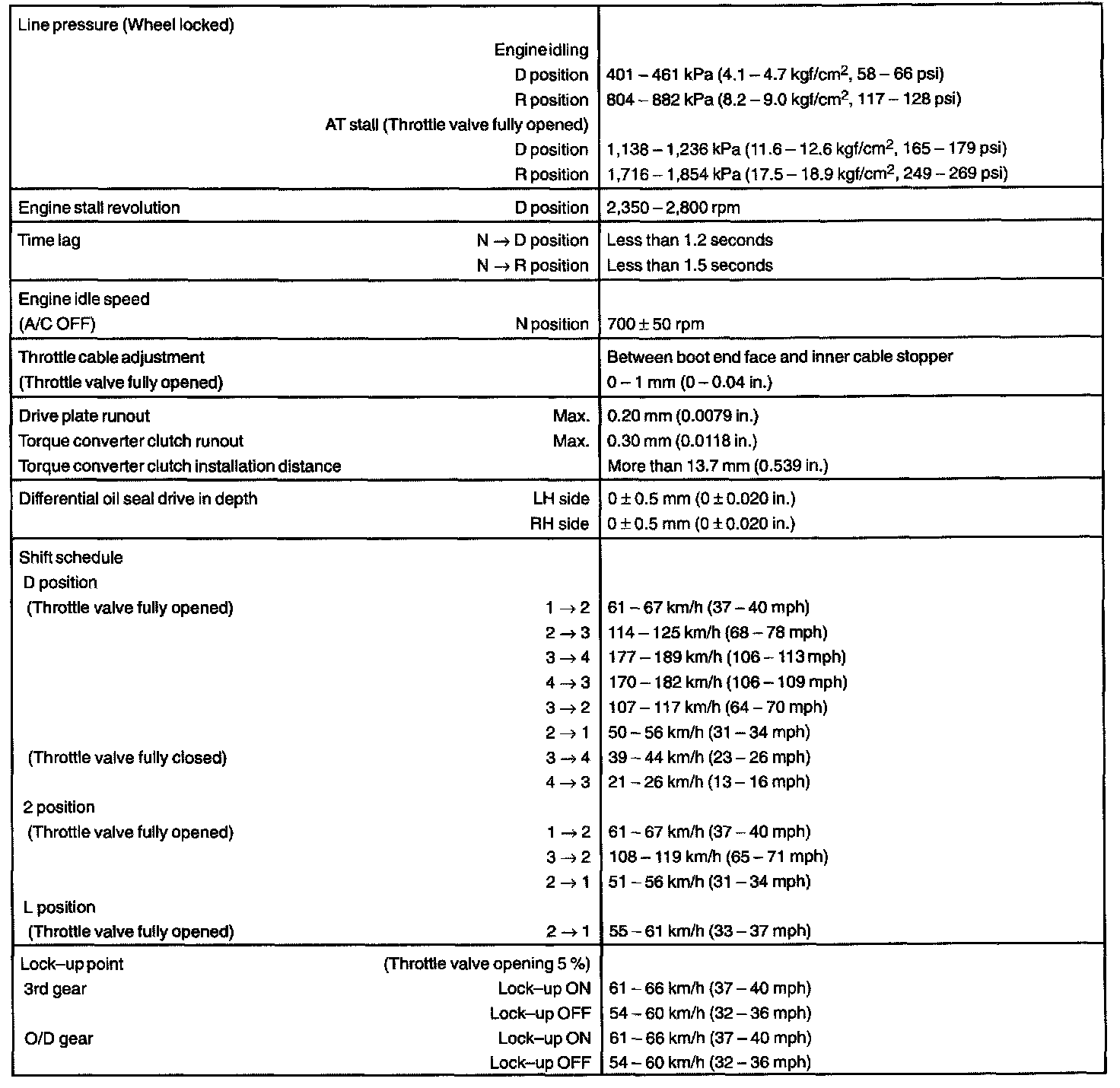 AUTOMATIC TRANSAXLE SERVICE DATA: