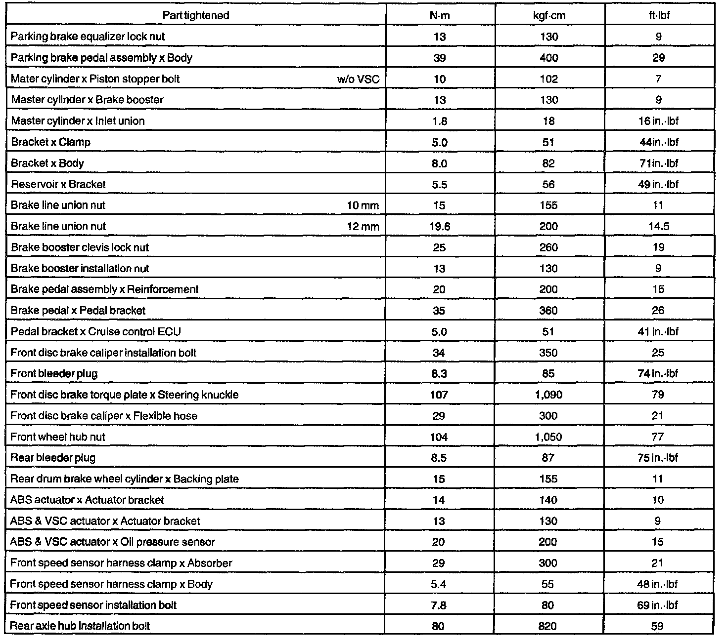 TORQUE SPECIFICATION: