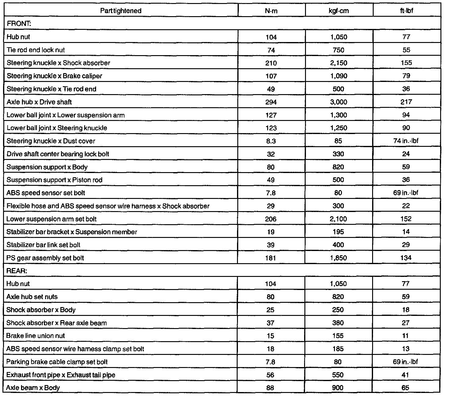 SUSPENSION AND AXLE SERVICE DATA: