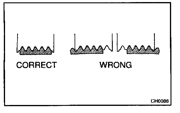 HINT: Cracks on the rib side of a drive belt are considered acceptable. If the drive belt has chunks missing from the ribs, it should be replaced.