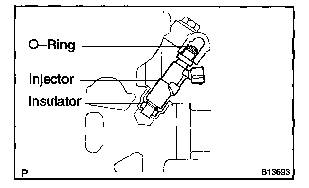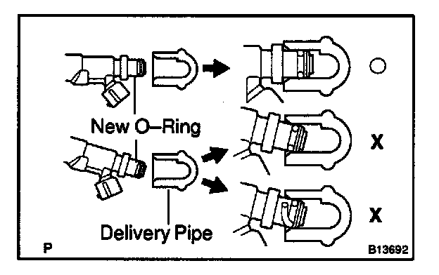 NOTE: Before installing the injector, must apply spindle oil or gasoline on the place where the delivery pipe or cylinder head touches an O-ring of the injector.
