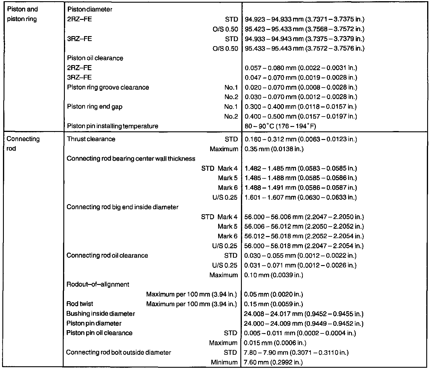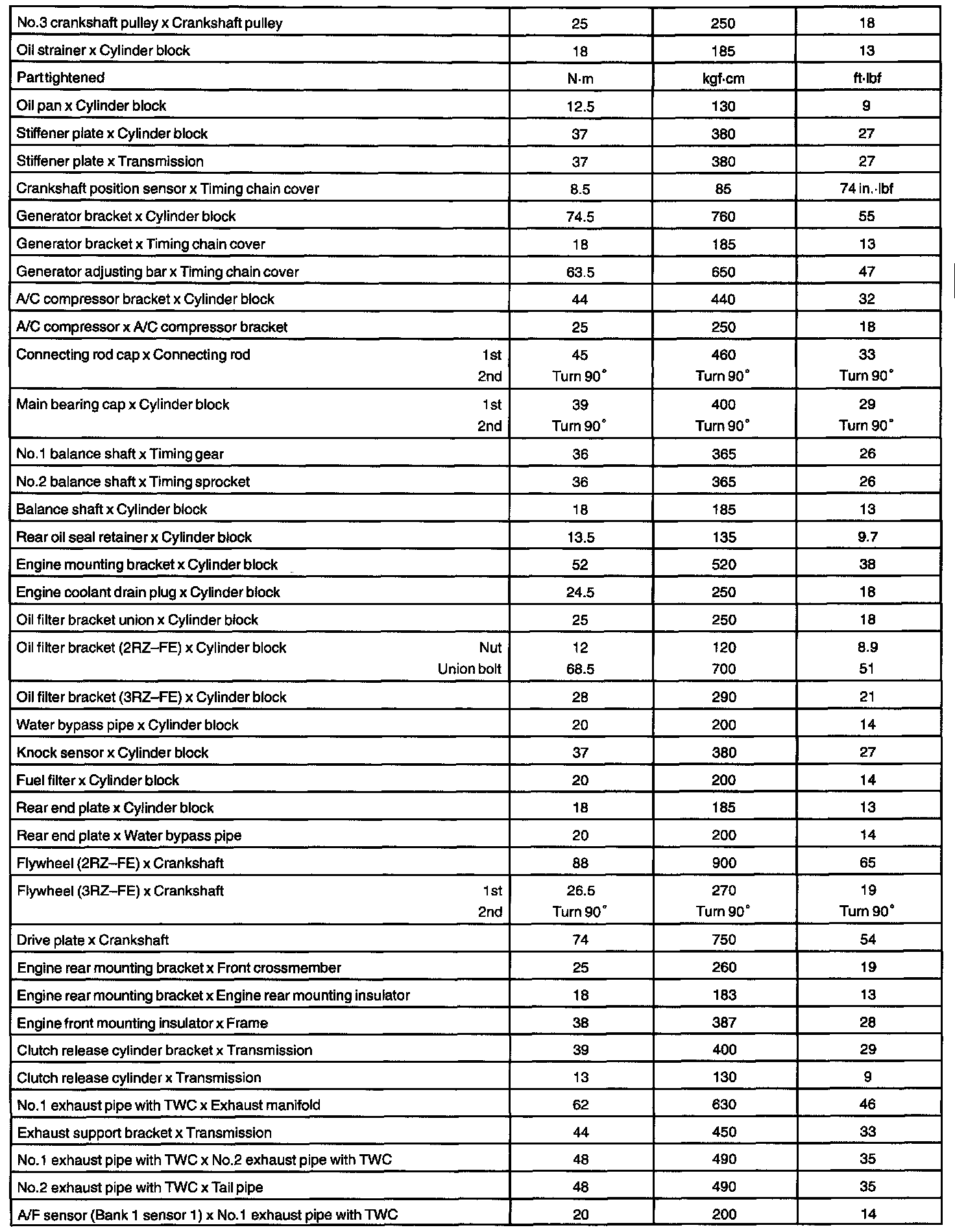 ENGINE MECHANICAL (2RZ-FE, 3RZ-FE) SERVICE DATA: