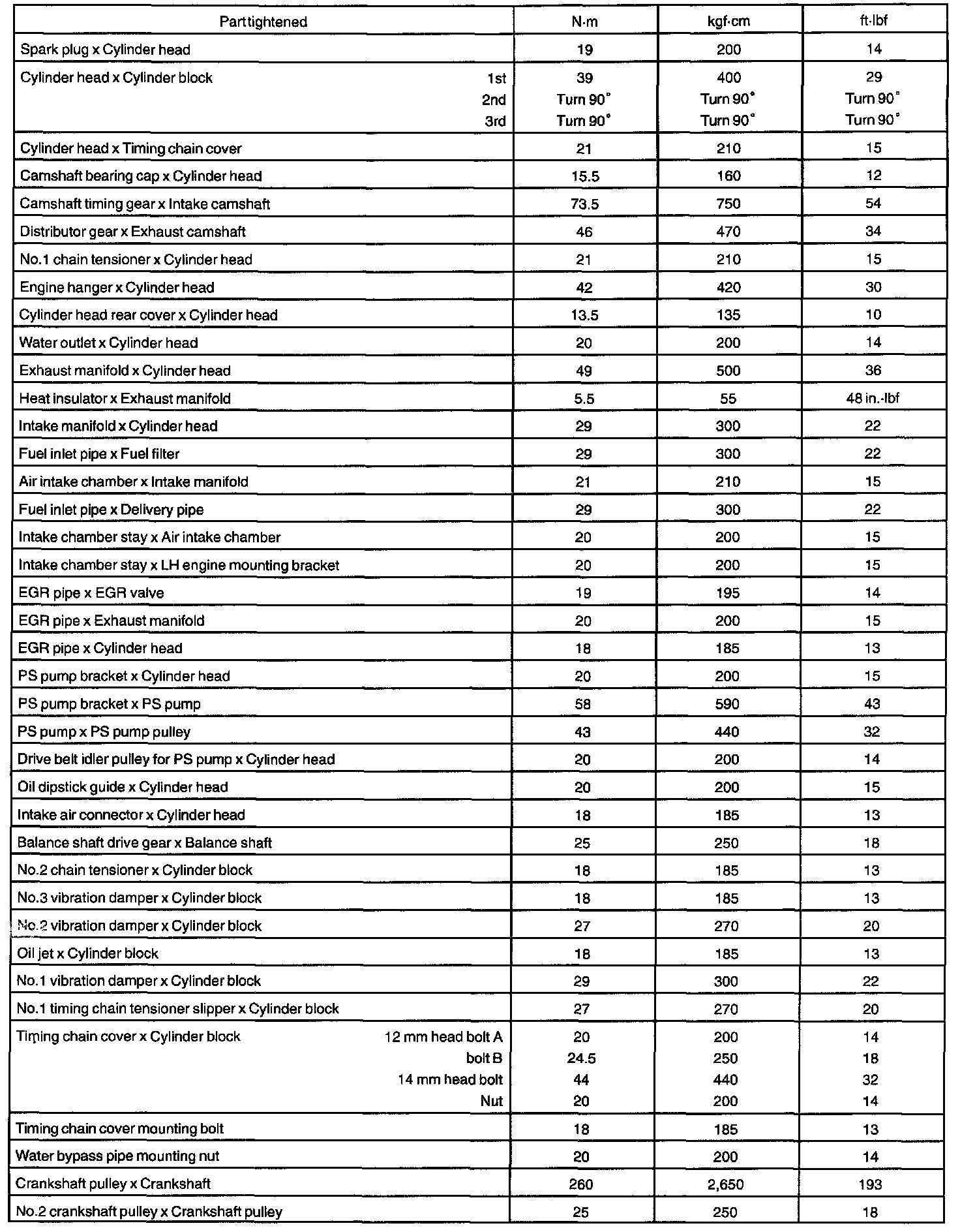 Engine Torque and Service Data