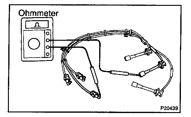 c. Using an ohmmeter, measure the high-tension cord resistance.