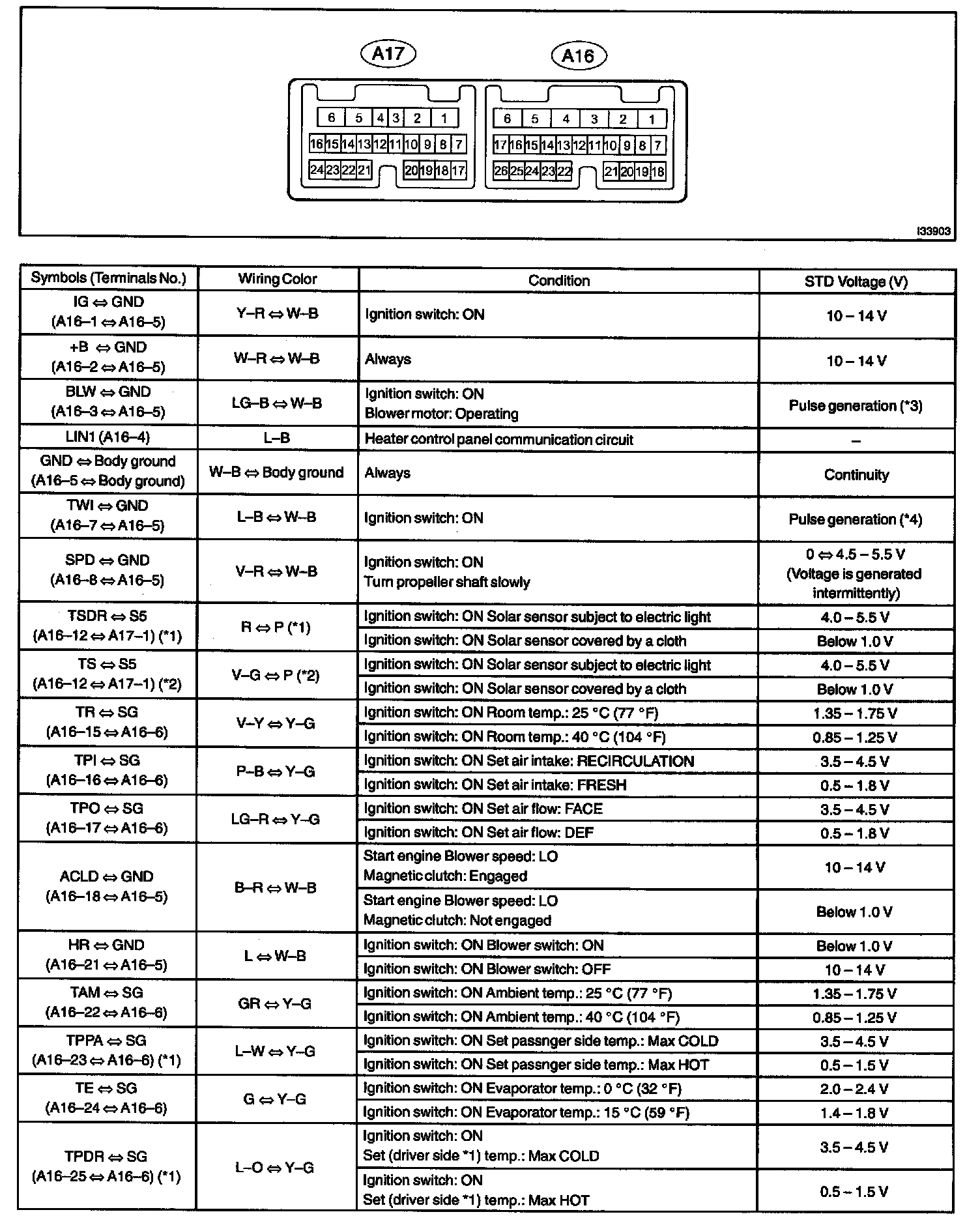 Terminals Of ECU/Pinouts - Air conditioning control assy: