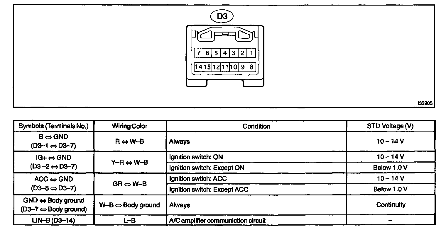 Terminals Of ECU/Pinouts - Air Conditioning Amplifier Part 2: