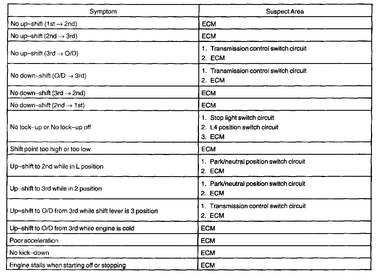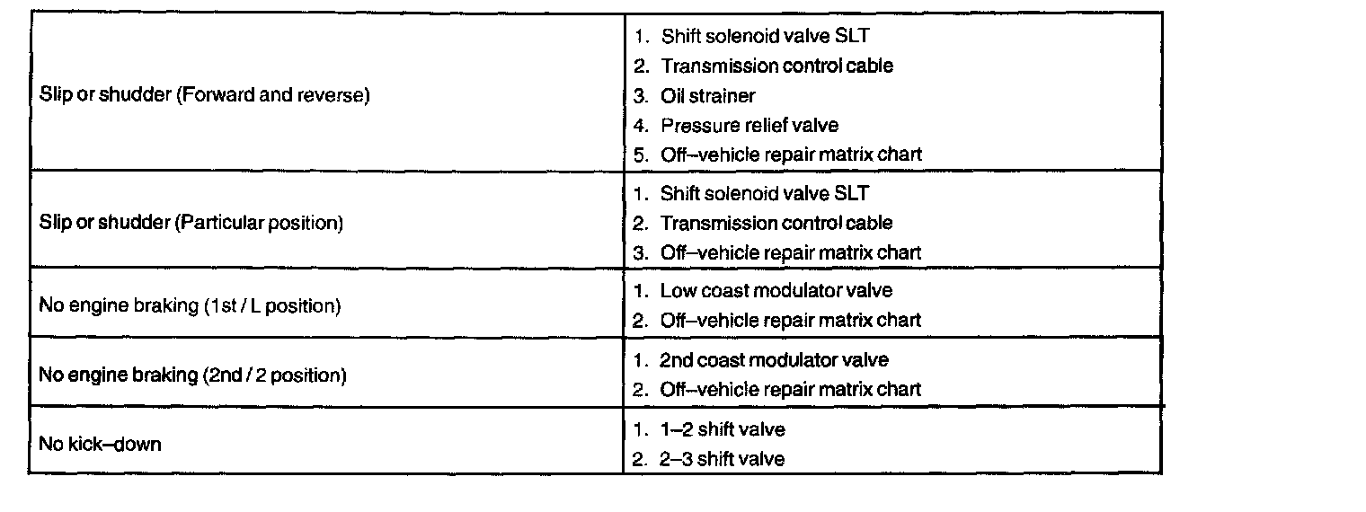PROBLEM SYMPTOMS TABLEHINT: If a normal code is displayed during the DTC check but the trouble still occurs, check the circuits for each symptom in the order given in the charts and proceed to the troubleshooting.