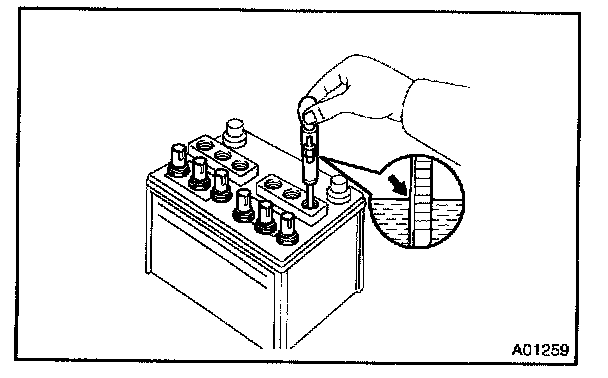 ON-VEHICLE INSPECTION1. CHECK BATTERY ELECTROLYTE LEVEL