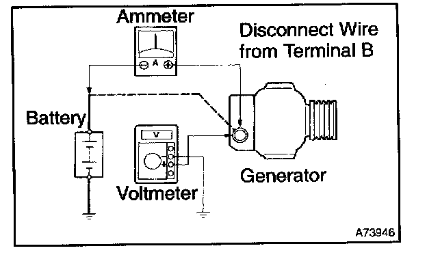 1. Disconnect to the wire from terminal B of the generator and connect it to the negative (-) lead of the ammeter.