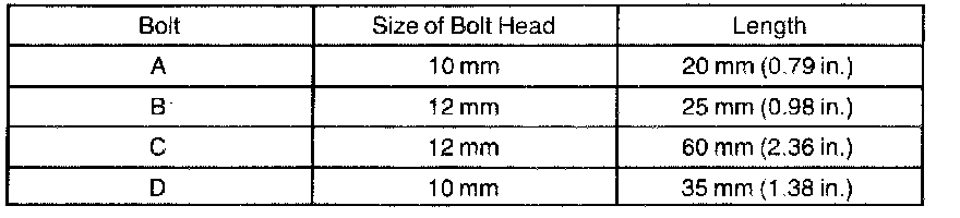 Bolt A and D 7.5 Nm (76 kgf-cm, 66 inch lbs.)