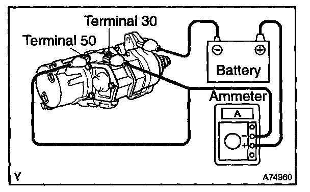 1. Disconnect the negative (-) lead from the switch body. Check that the clutch pinion gear returns inward.